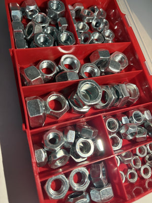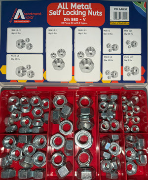 This assortment of all-metal self-locking nuts is built for demanding mechanical applications where high strength and temperature resistance are required. Designed to DIN 980-V standards, these locknuts provide secure fastening without nylon inserts, making them ideal for environments with heat, vibration, and corrosive exposure.