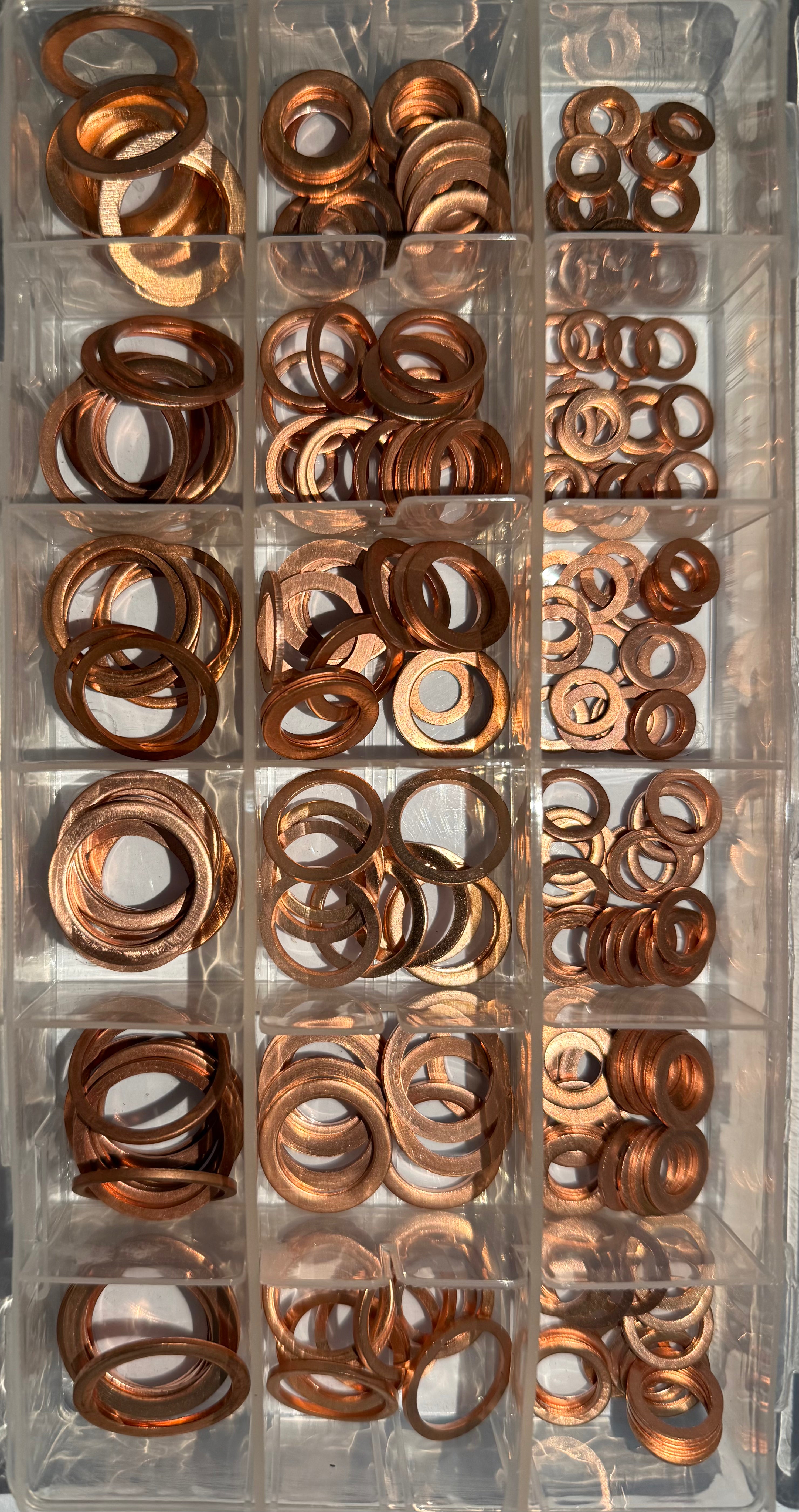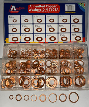 Annealled Copper Washers - Din 7603A 270 Piece Kit, 18 Types 270 PCS | Large Box
