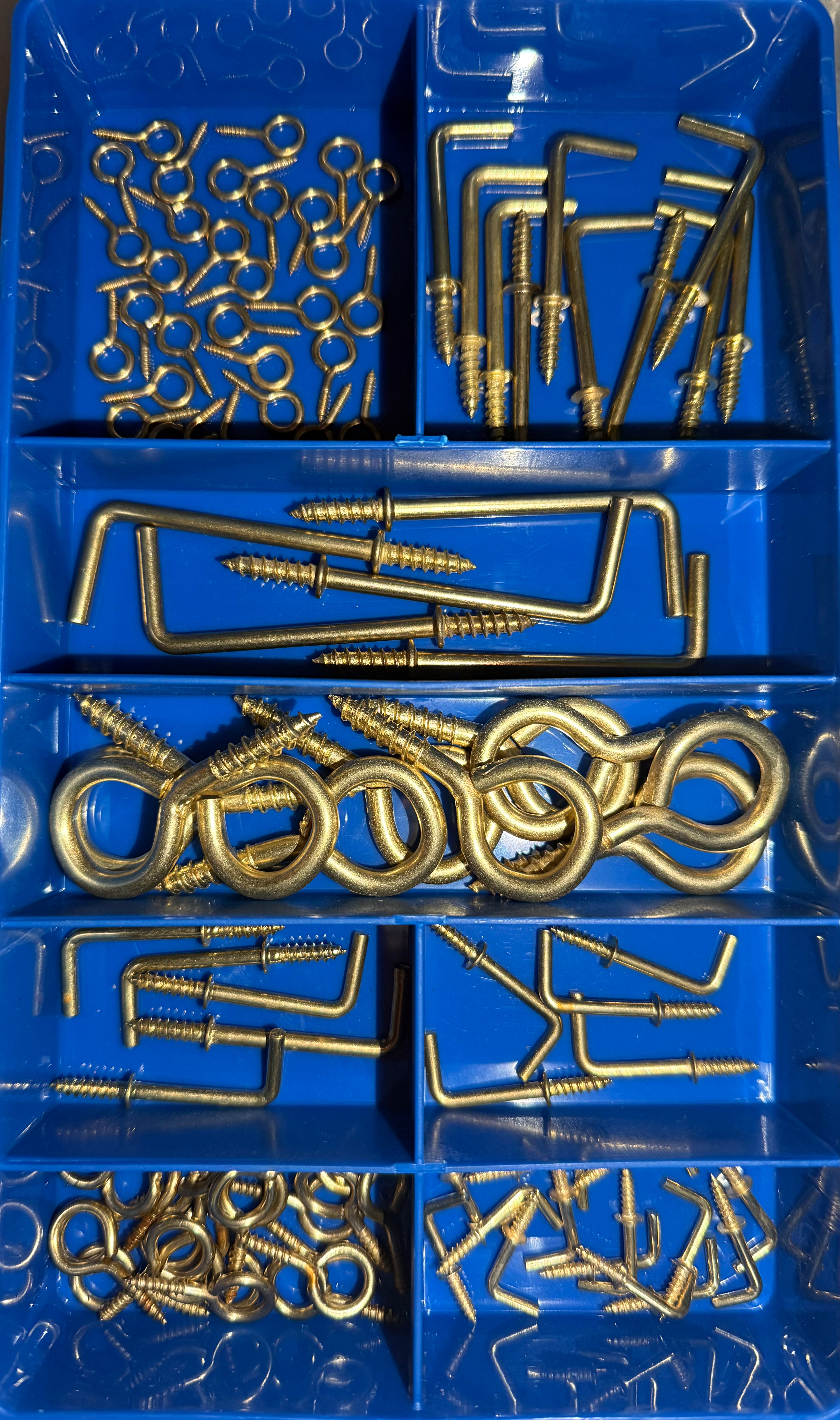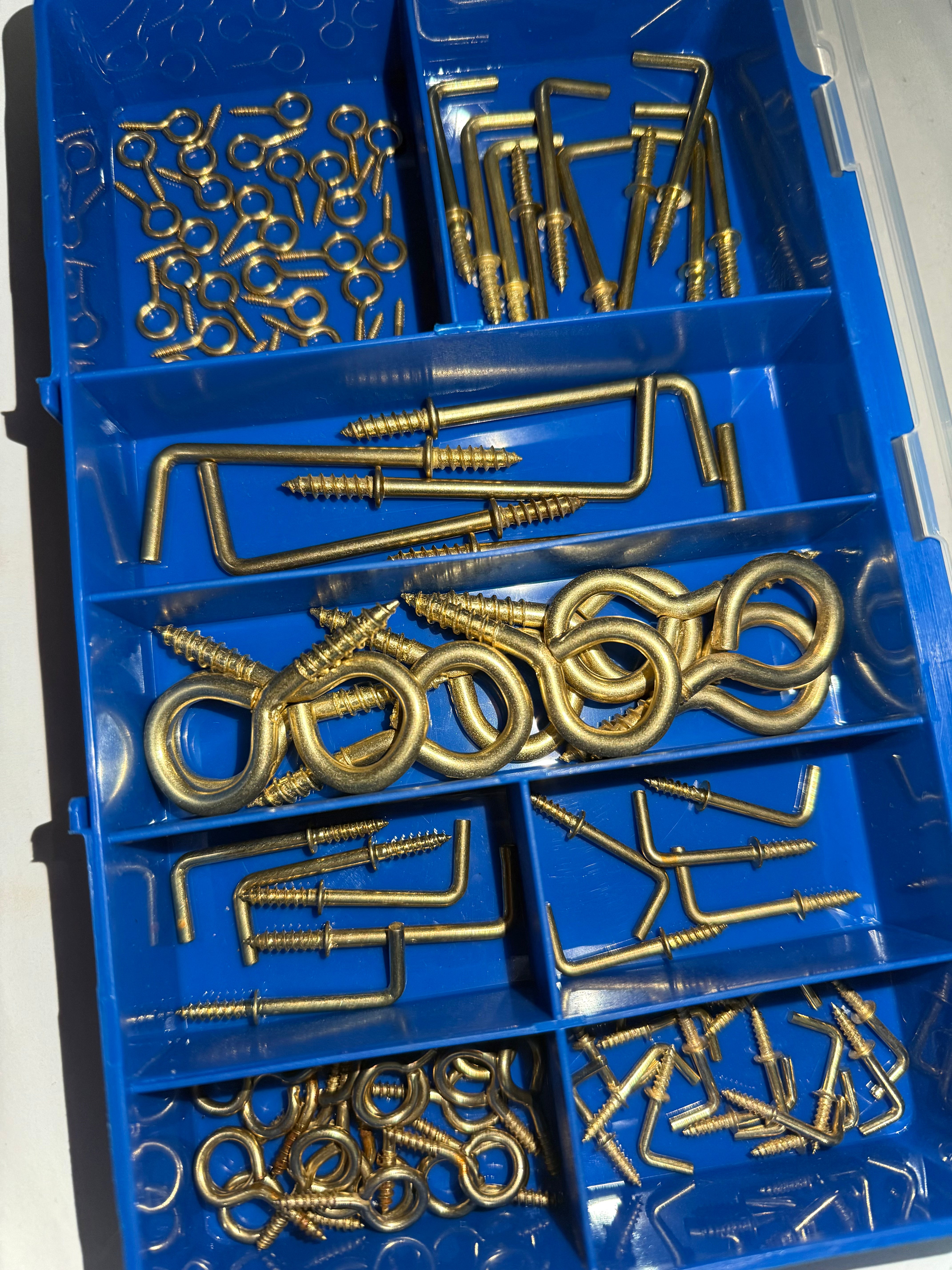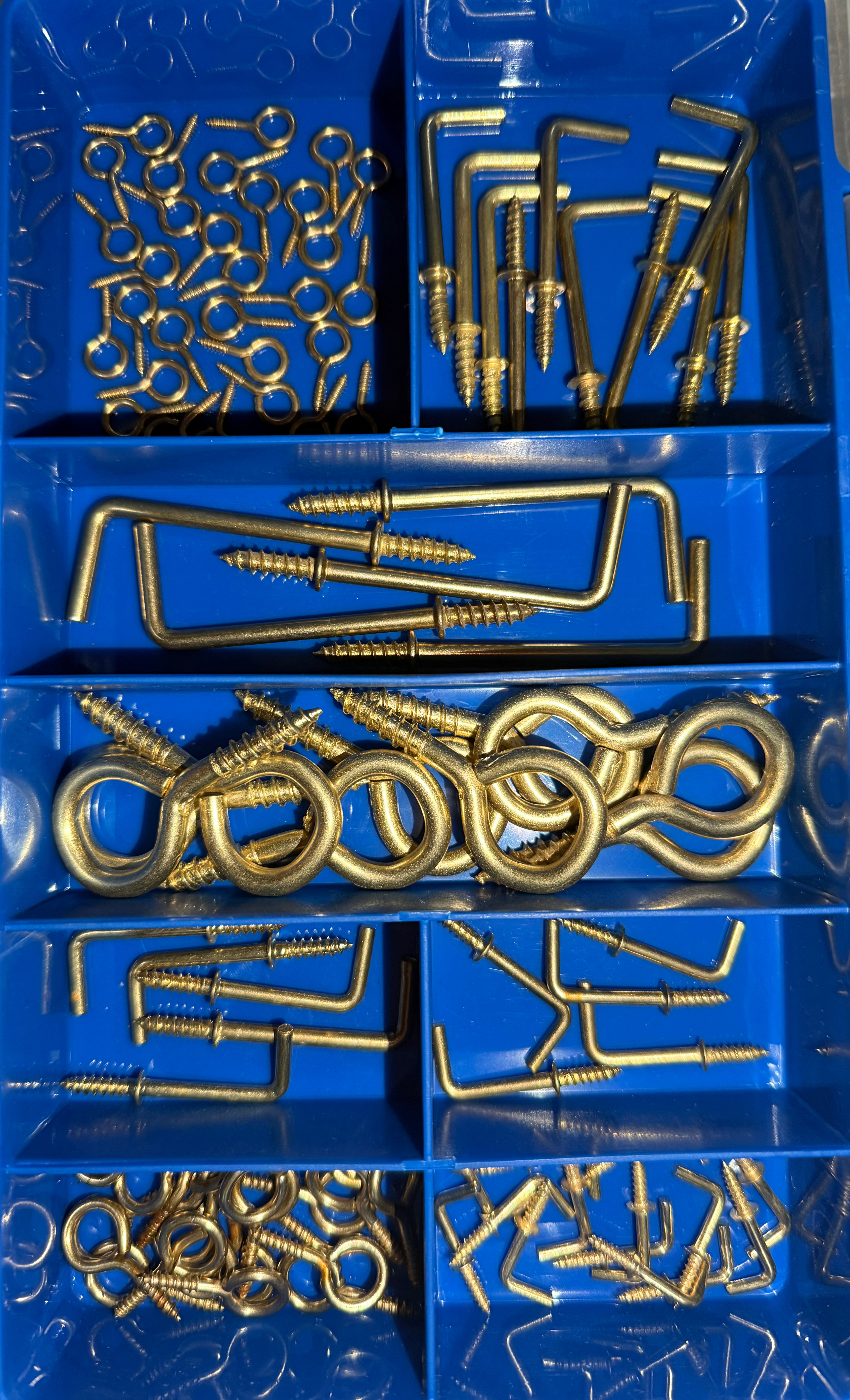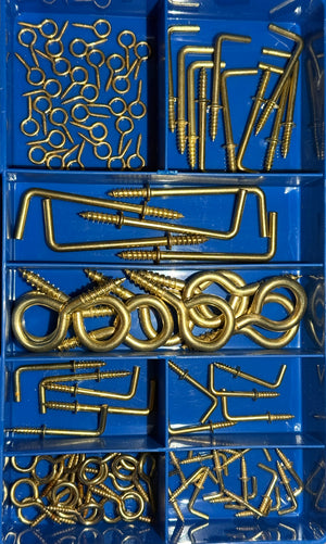 Enhance your workspace or home organization with the HAK35 Brass-Plated Hook & Eye Screw Assortment Kit—combining convenience, utility, and finish in one compact set.