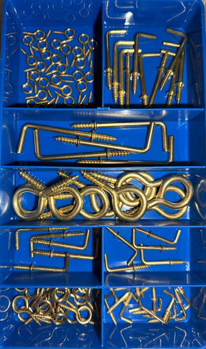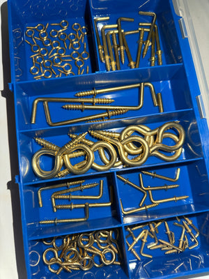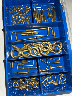 Assortment DIY "L" Square Hook & Eye Screws (Brass Plated) - 100 Piece