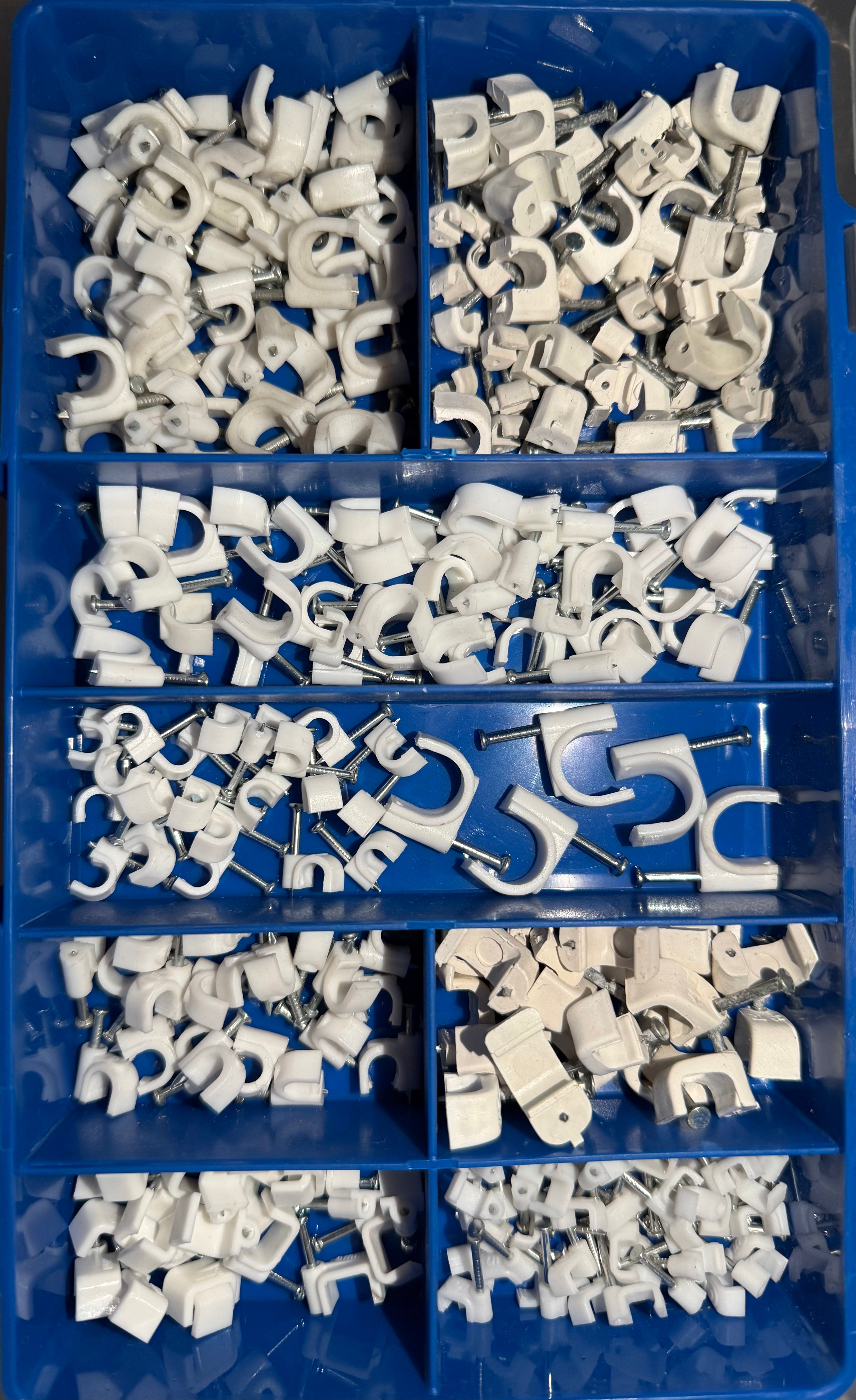 This combination of round and square clips provides versatile cable management options for both domestic and commercial electrical installations.