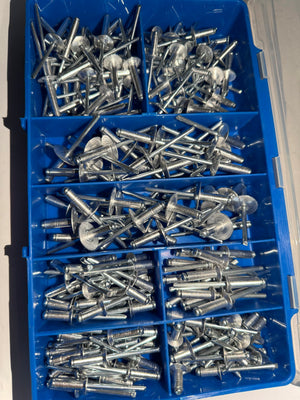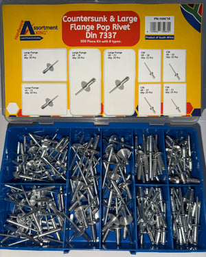 HAK16 Pop Rivets are high-quality blind rivets designed for professional and industrial applications. The range includes countersunk head rivets for flush finishes and large flange rivets for distributing load over wider surfaces. These rivets provide strong, reliable fastening in a variety of materials where access is limited to one side.
