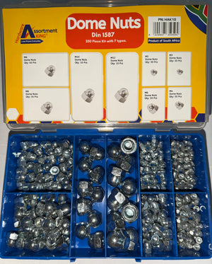 The HAK10 Dome Kit offers a practical 150-piece selection of premium zinc-plated dome nuts (DIN 1587) across 7 popular sizes. This set is ideal for both general-purpose fastening and specialized applications where tool-free adjustments or decorative finishes are required.