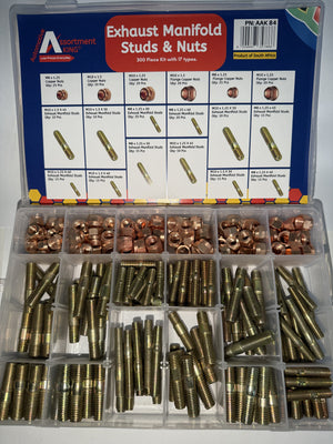 The AAK84 Exhaust Manifold Studs & Nuts Kit is a comprehensive, high-temperature resistant fastener set specifically curated for automotive exhaust system repairs, rebuilds, and high-performance applications. This all-in-one assortment includes both manifold studs and matching copper and flange nuts in the most commonly used metric fine thread sizes.