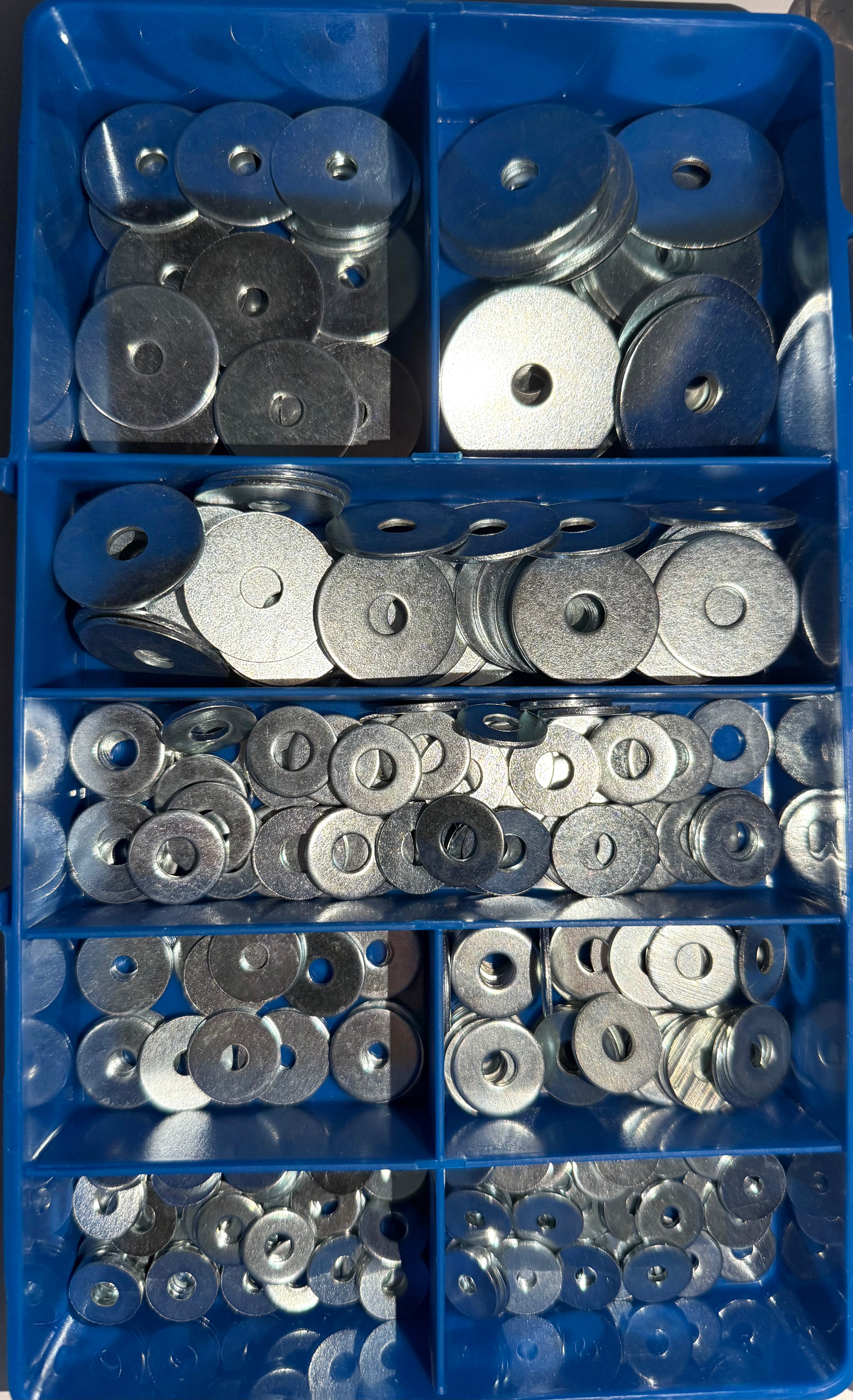 The HAK13 Washer Assortment Kit includes 300 zinc-plated fender (penny) washers in a variety of small sizes, making it an essential solution for mechanics, fitters, farmers, and tradespeople. These washers, also referred to as mudguard or penny washers, are characterized by their large outside diameter and smaller internal hole, providing excellent load distribution—ideal for use with thin materials or oversized holes.
