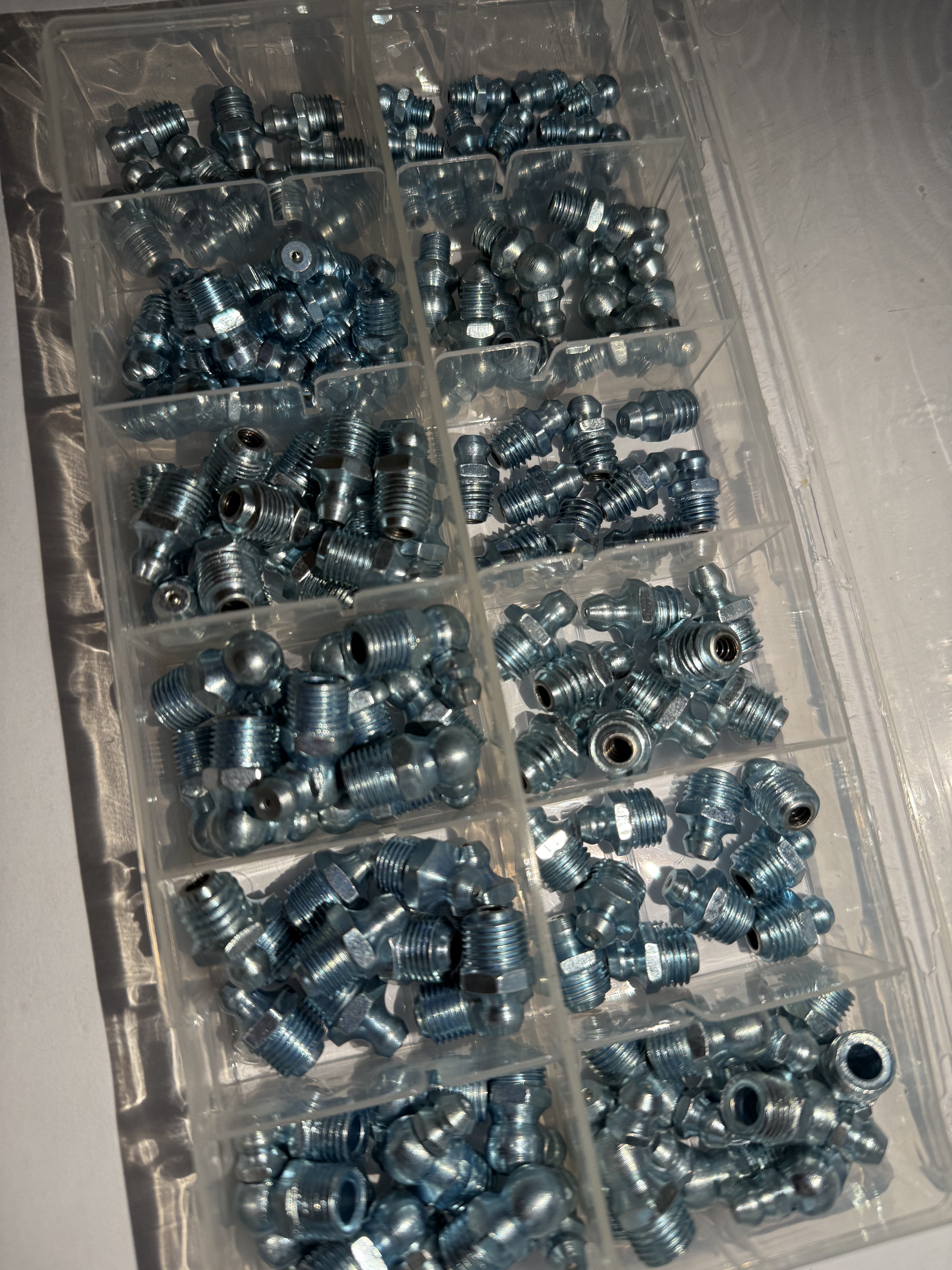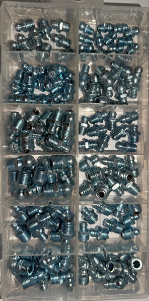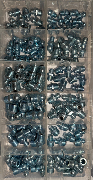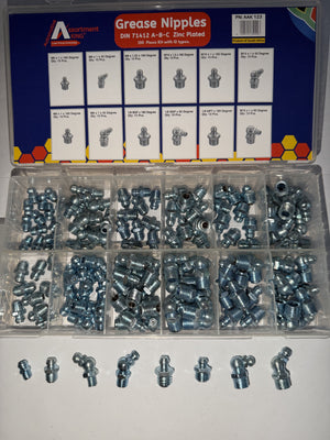 Grease Nipples - Din 71412 A-B-C Zinc Plated 130 Piece Kit, 12 Types