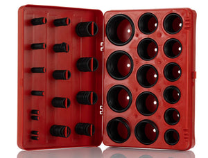 High-quality nitrile (Buna-N) O-ring assortment kit manufactured to AS568A imperial sizes. Designed for sealing in automotive, air conditioning, hydraulic and general plumbing applications. This kit includes 32 of the most commonly used imperial sizes in a convenient carry case for quick access.