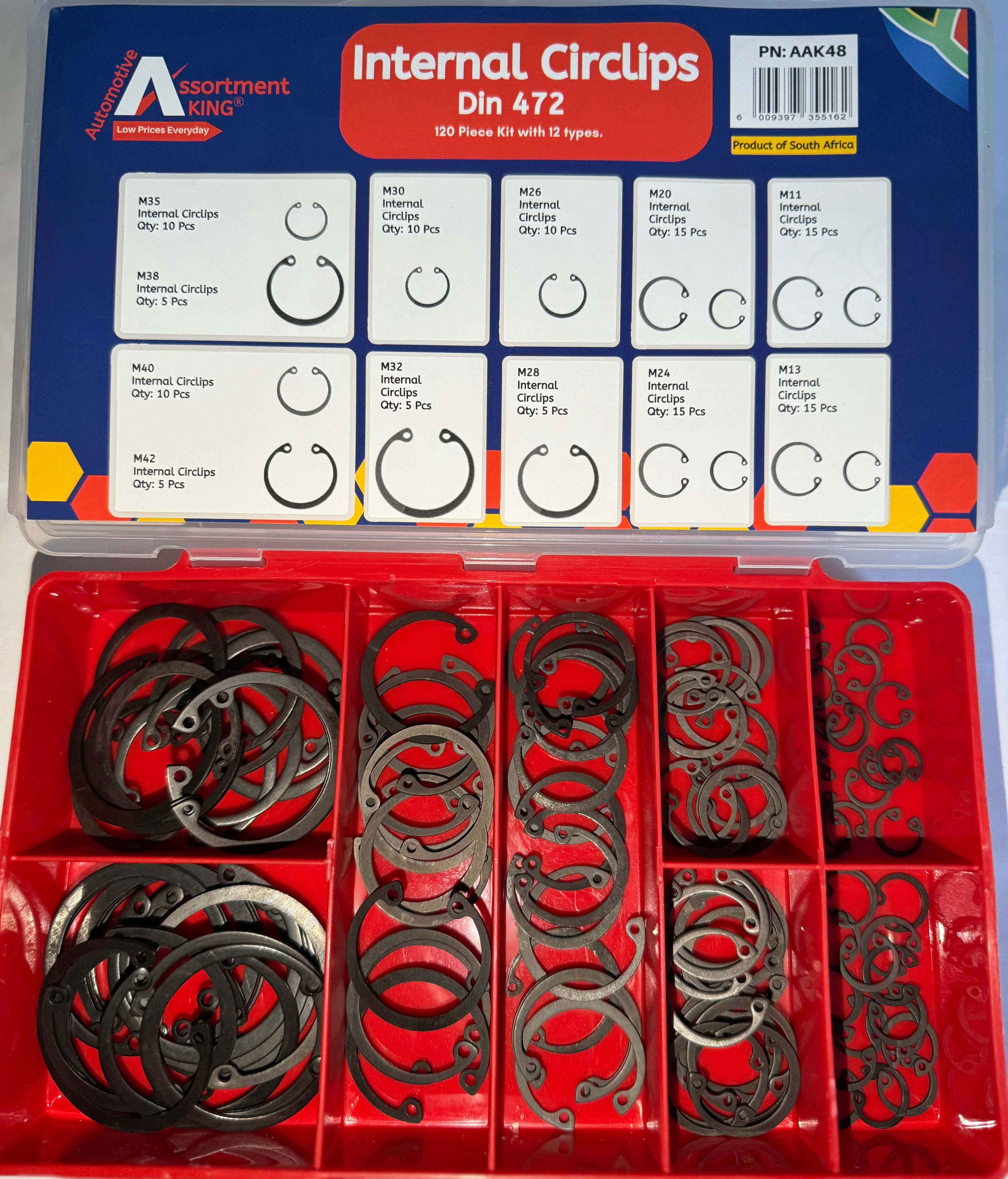 The AAK48 Internal Circlips manufactured to DIN 472 standard are precision-engineered retaining rings designed to fit into grooves inside bores or housings. These circlips provide secure axial retention of components on shafts, offering reliable holding power in machinery and mechanical assemblies.