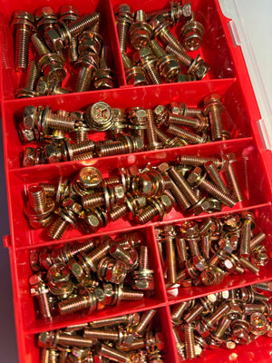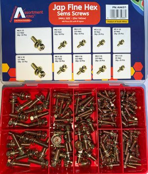 Jap Fine Hex Sems Screws – Yellow Zinc (140 Pieces / 10 Types – Small Size Assortment)