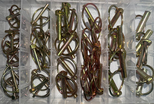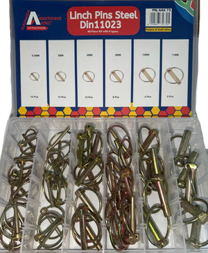 The AAK73 Linch Pin Kit offers a selection of high-strength steel linch pins designed to meet DIN 11023 standards. These self-locking pins are essential for securing implements and attachments in agricultural, construction, and industrial equipment. The convenient assortment covers common sizes to suit a range of shaft diameters and locking needs.