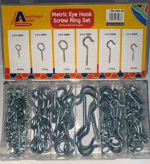 Metric Eye Hook Screw Ring Set Assortment Set - (Zinc Plated) 151 PCE