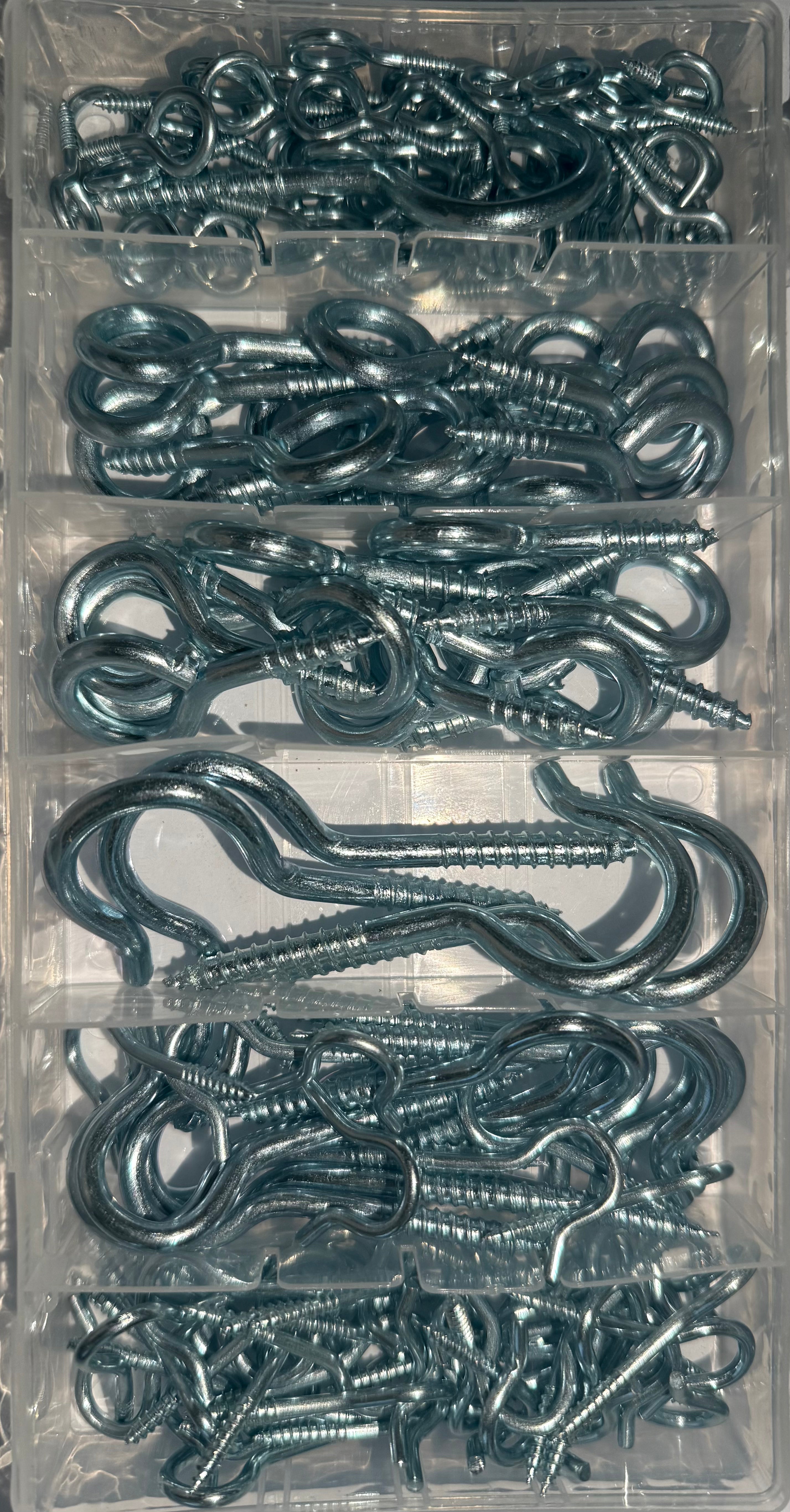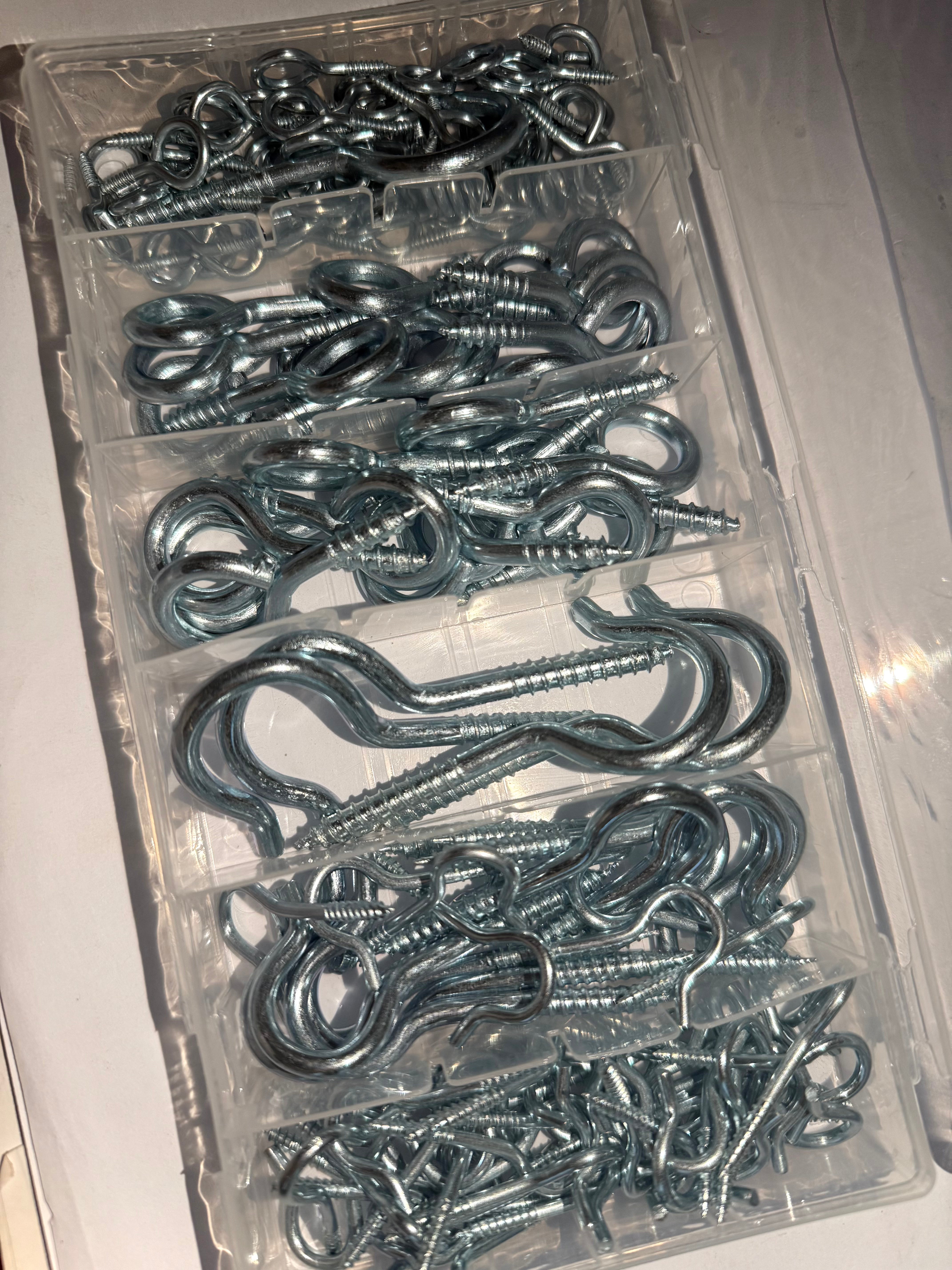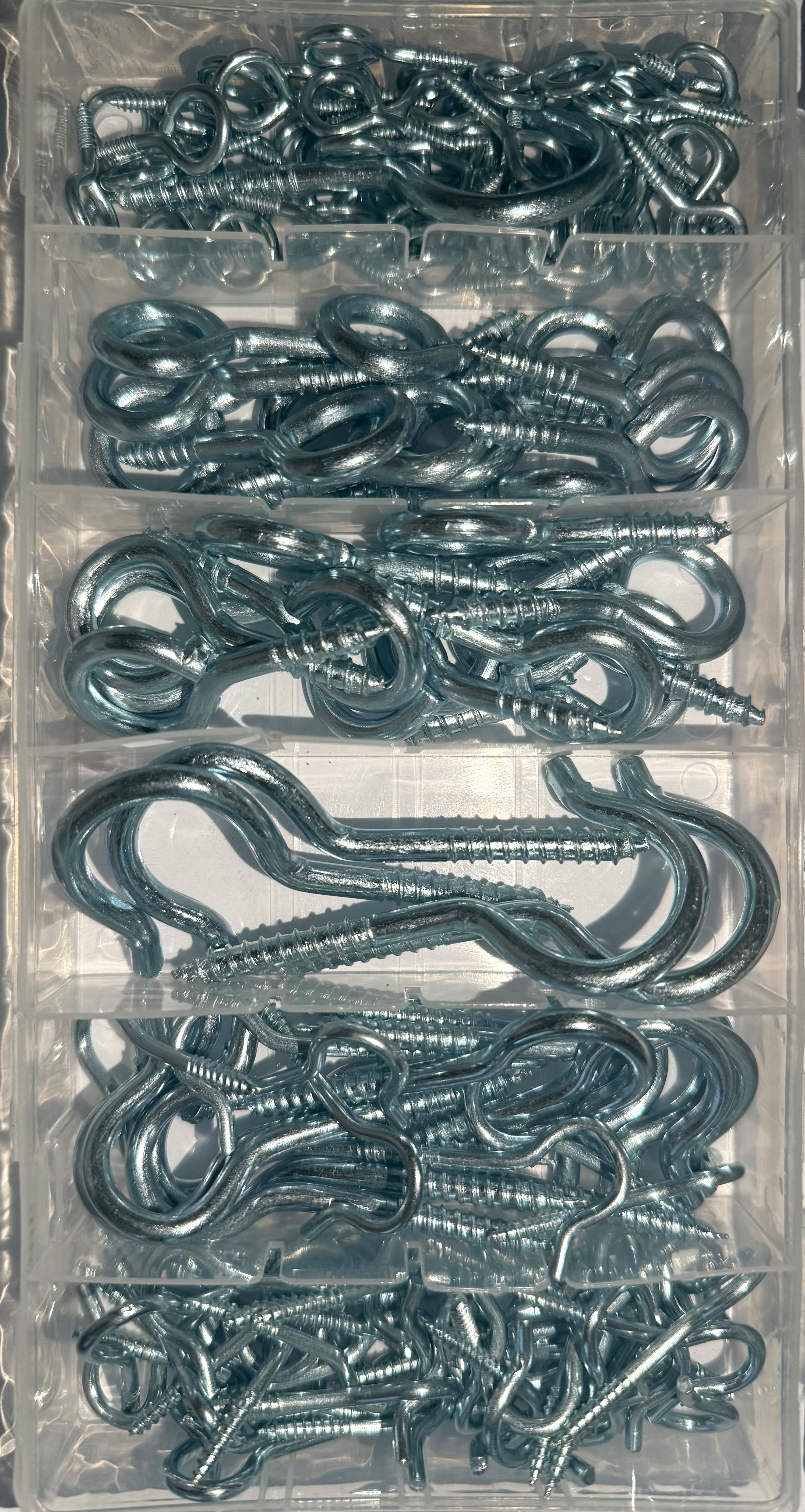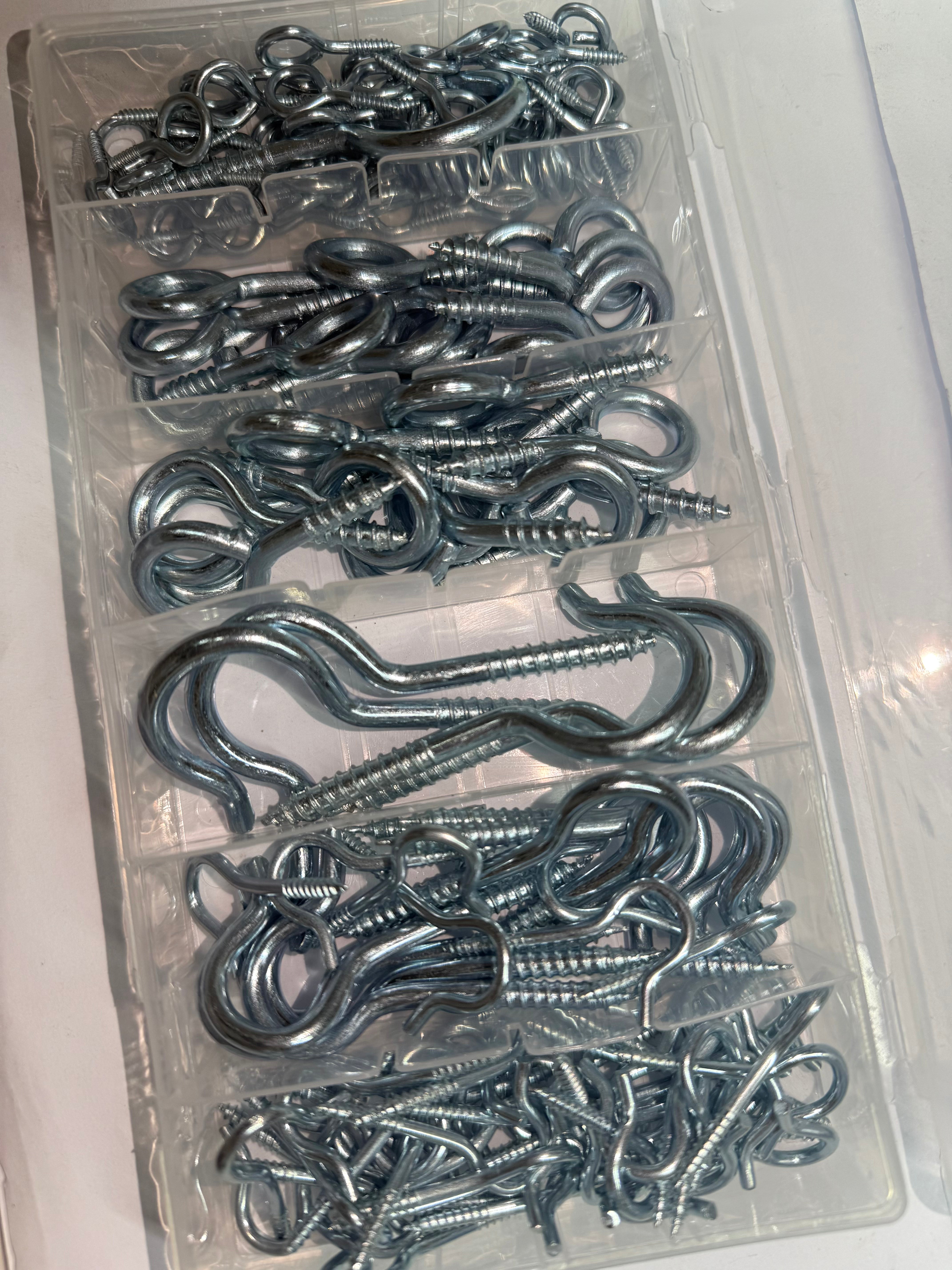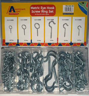 The HAK48 Eye Hook Screw Ring Set is a versatile 151-piece collection of metric zinc-plated eye screws, ideal for general-purpose hanging, fastening, and support in light-duty construction, interior installations, and DIY applications. Crafted for durability and corrosion resistance, these screw-in eye hooks are perfect for wood, wall plugs, and other anchoring surfaces.