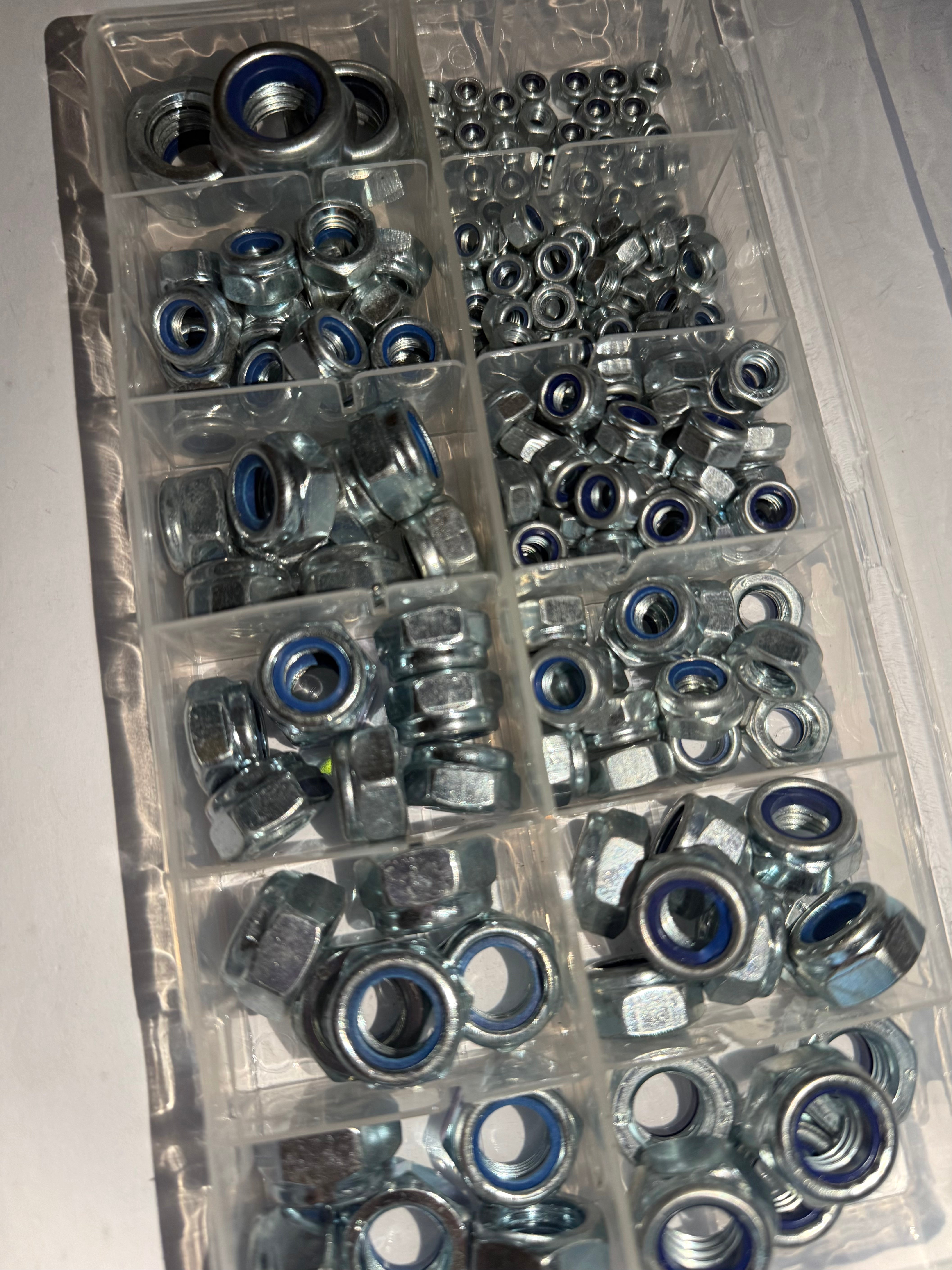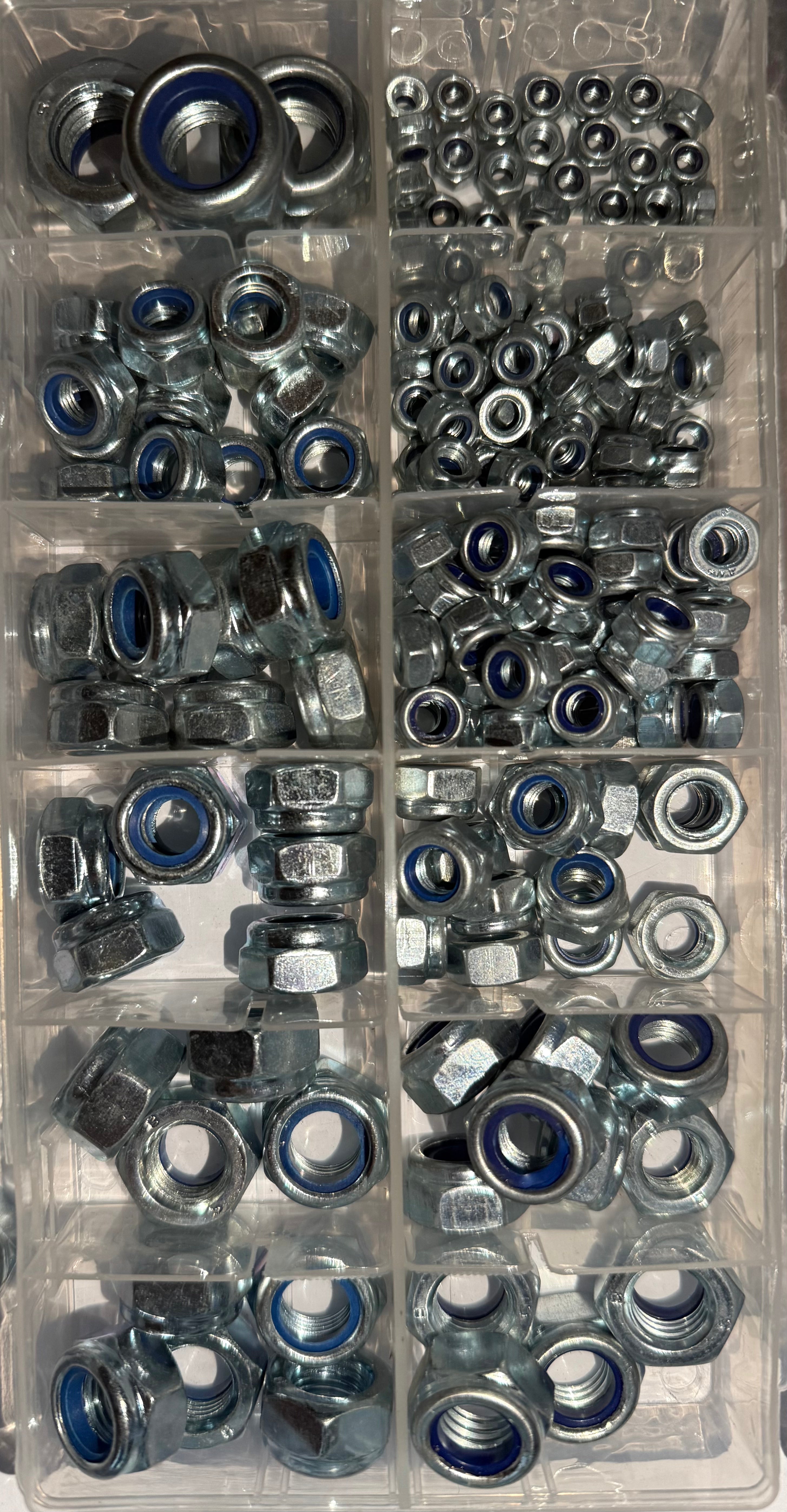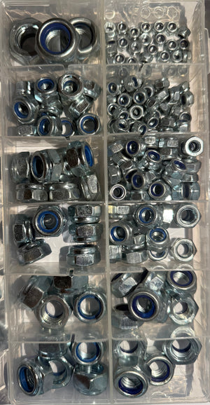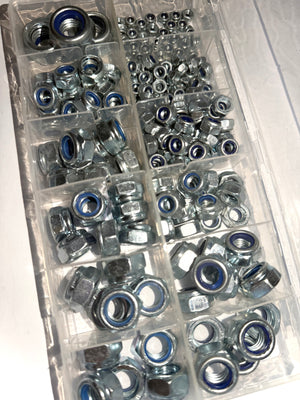 The AAK115 Nyloc Nuts Assorted Kit features DIN 985-compliant self-locking hex nuts equipped with a durable nylon insert, providing a secure and vibration-resistant locking mechanism. These nuts are ideal for preventing loosening due to vibration or torque, making them perfect for automotive, machinery, and structural applications.