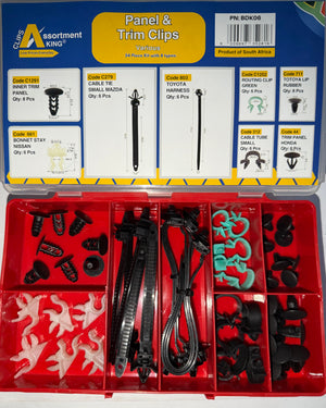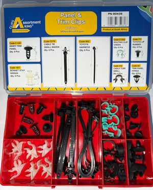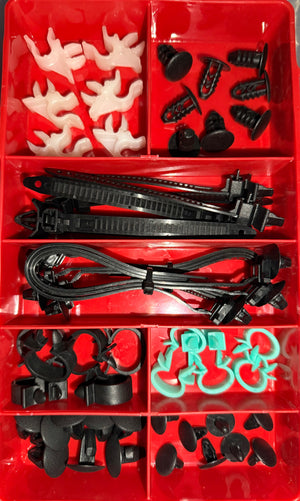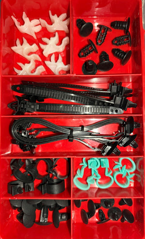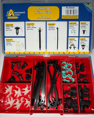 The BDK06 Panel & Trim Clip Kit is a curated selection of high-quality fasteners designed for various interior trim, bonnet, and wiring harness applications in vehicles like Mazda, Toyota, Nissan, and Honda. Each clip is crafted for secure fitment, vibration resistance, and long-term durability, making this assortment perfect for body shops, detailers, and auto restorers.