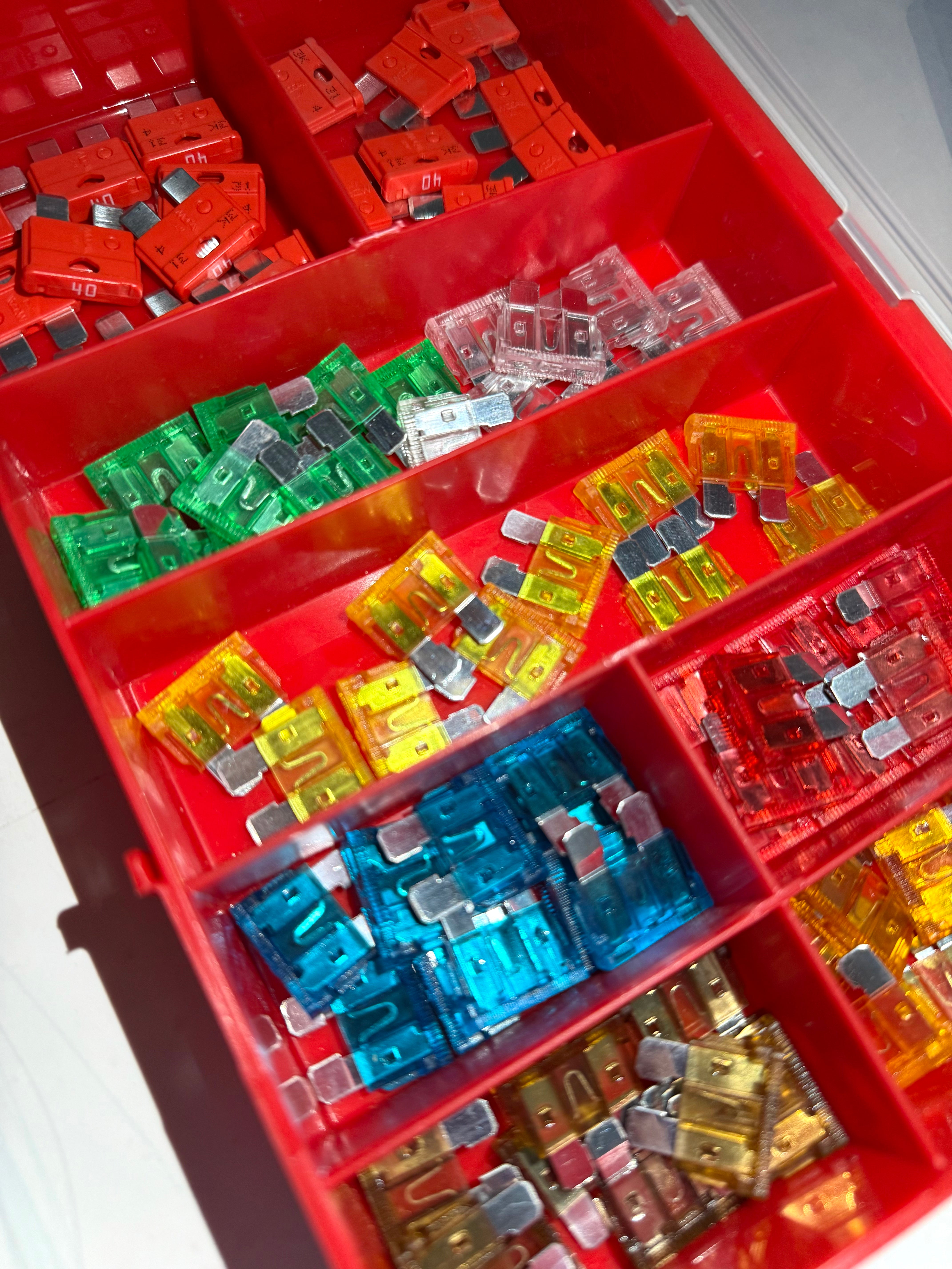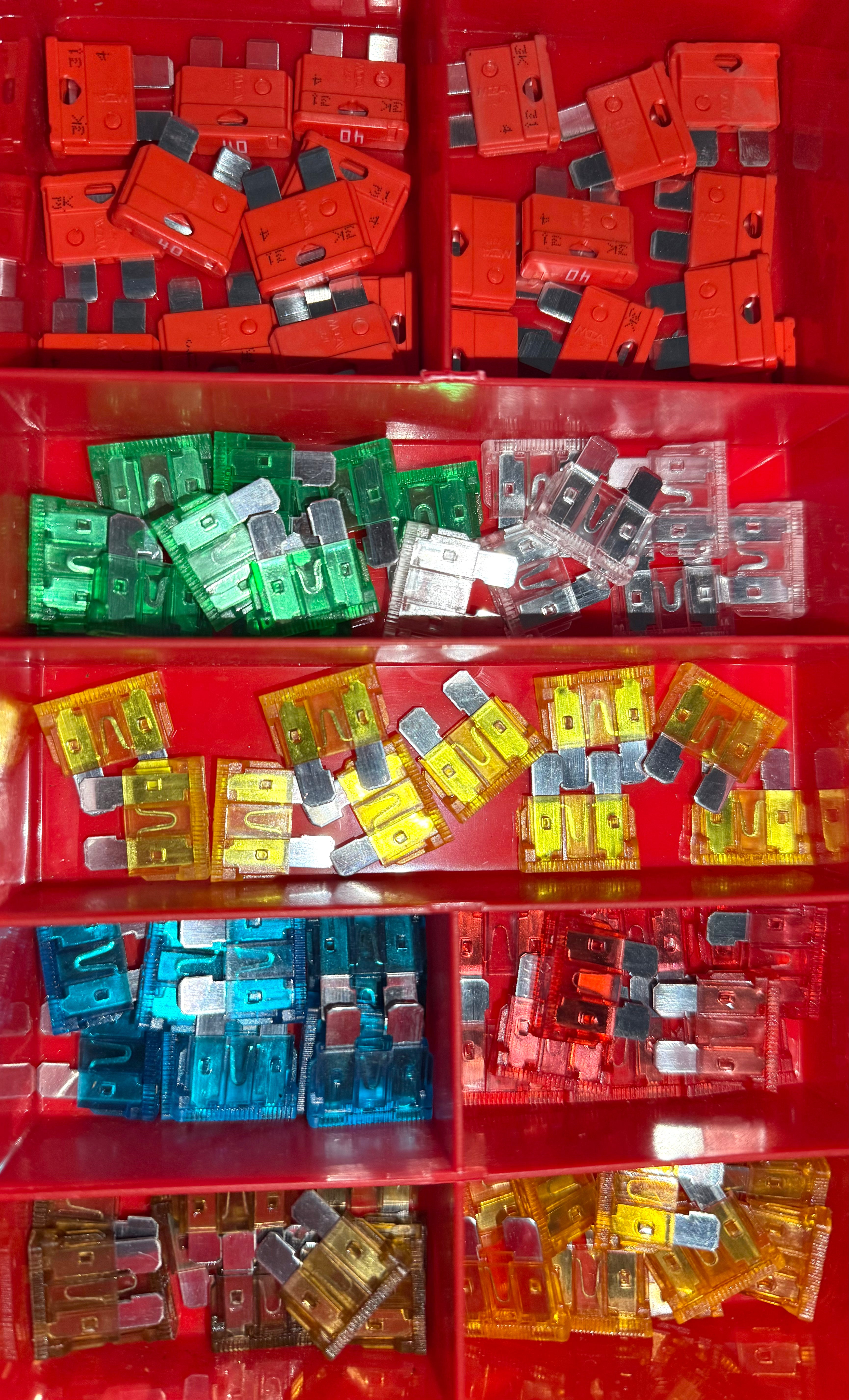 The AAK58 Medium Plug-In Fuse Kit includes 90 color-coded automotive fuses in standard blade format. Designed for easy installation and dependable circuit protection, this kit covers a wide range of amperages from 5A to 75A, making it ideal for modern vehicles, trucks, trailers, and electrical systems.