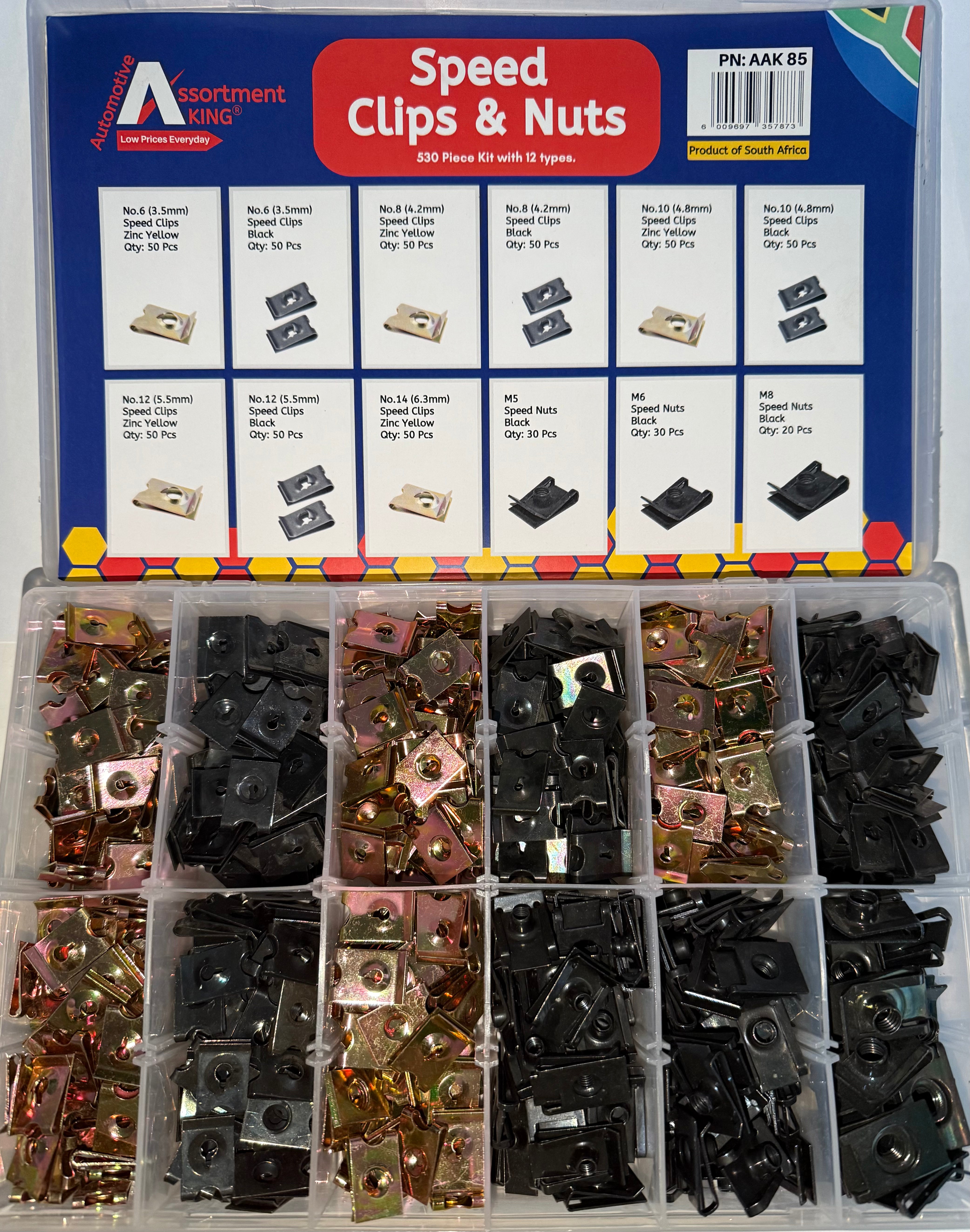 Upgrade your fastening solutions with the AAK85 Speed Clips & Nuts Assortment Kit — a robust and versatile set designed for automotive body panel fastening, trim fixing, bumper assembly, and industrial sheet metal applications. This kit features both zinc passivated yellow and black phosphate coated clips and nuts, ensuring maximum compatibility with varying vehicle types and environments.