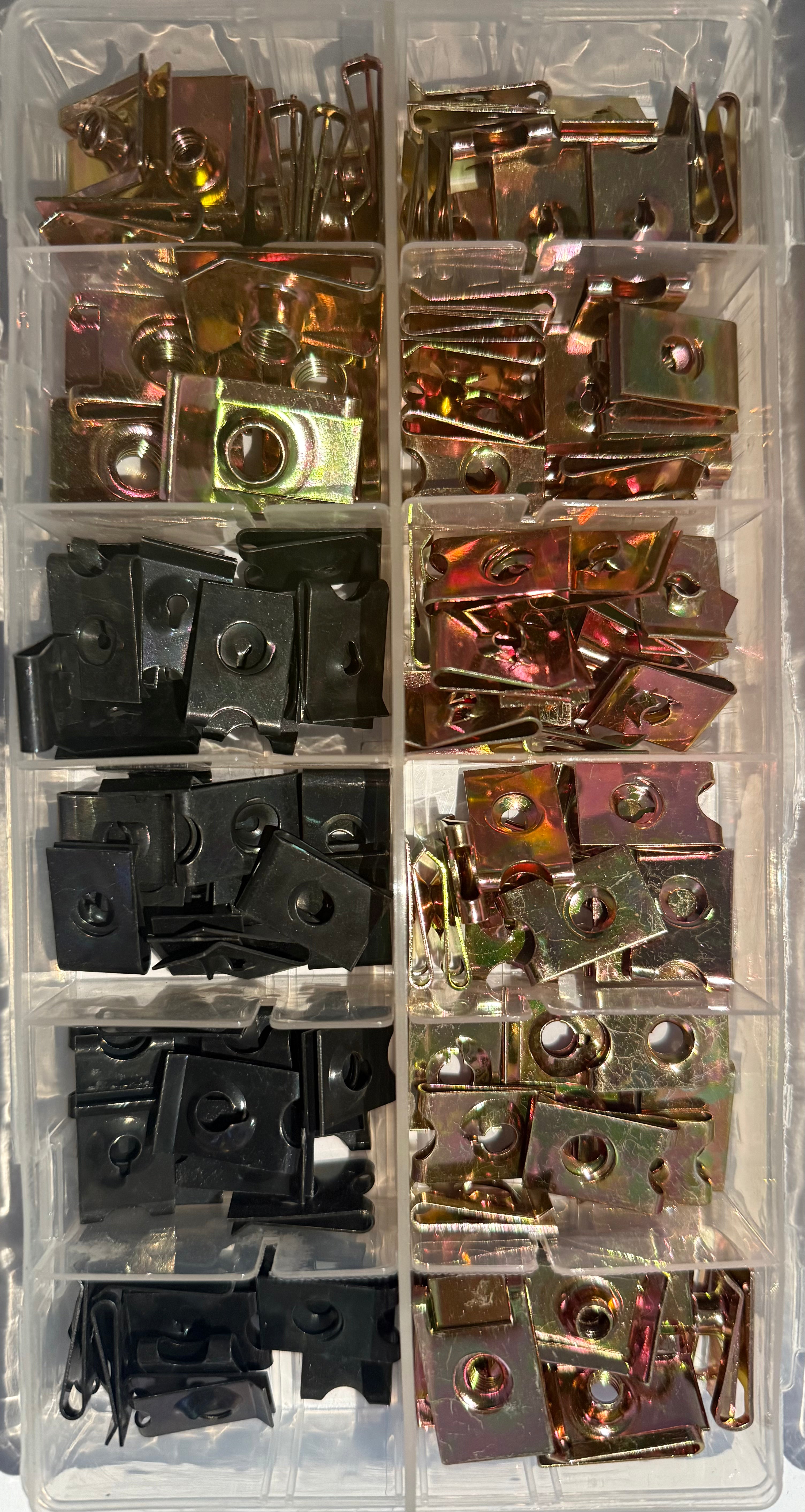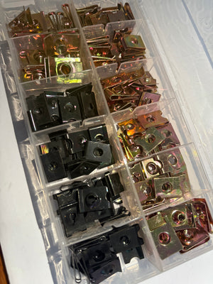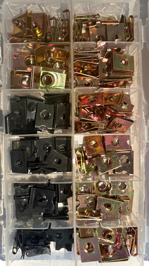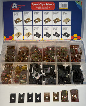 The AAK114 Speed Clips & Nuts Assorted Kit is a comprehensive fastener set engineered for quick, secure, and tool-free fastening of panels, trims, and bodywork. Ideal for automotive, industrial, and general mechanical use, this kit features U-type spring steel clips and speed nuts with both Zinc Yellow (Z/Y) and Black finishes to suit a variety of aesthetic and corrosion resistance needs.