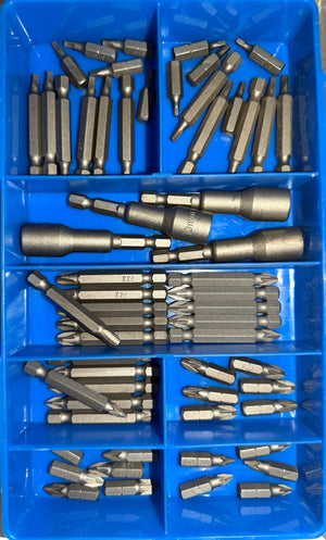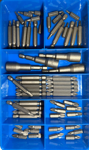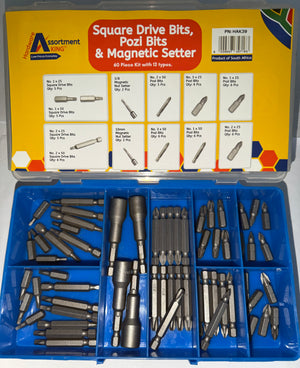 The HAK39 Bit Assortment Kit is a 60-piece professional-grade set featuring Pozi drive bits, square drive bits, and magnetic nut setters. Engineered for compatibility with all standard drill drivers and impact tools, this kit is ideal for woodworking, metalwork, construction, cabinetry, and general screwdriving applications.