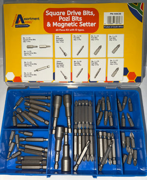 Square Drive Bits, Pozi Bits & Magnetic Nut Setter - 60 PCE